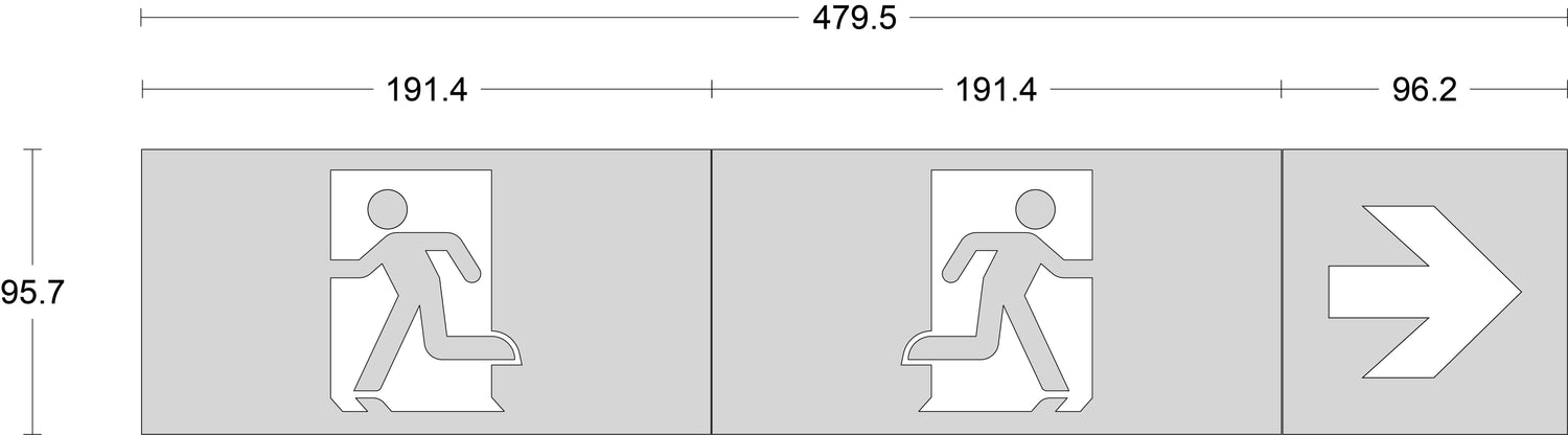 Supplied with directional arrow/left/right running man legends as standard