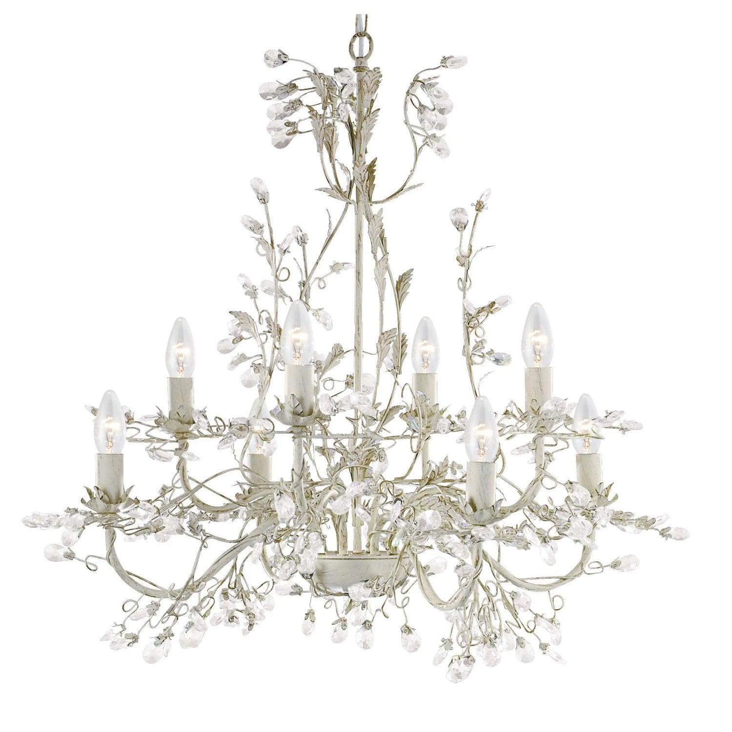 Searchlight Alamandite 8Lt Pendant - Cream & Gold Metal & Glass Drops Search Light Part Number 2498-8CR
