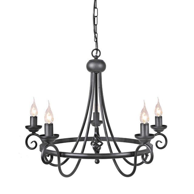 An elegant 5lt chandelier has a medieval feel, but the updated Harlech is equally suited to modern or traditional environments.
