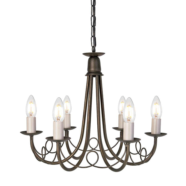 Elstead Lighting Chandelier from the Minster range. Minster 6 Light Chandelier Product Code = MN6-BLK-GOLD