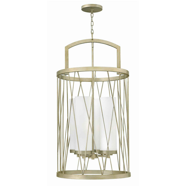 Nest finds its inspiration from patterns found in nature. This pendant collection conveys an organic modern elegance in a Silver Leaf finish complemented by opal glass with a painted linen effect.