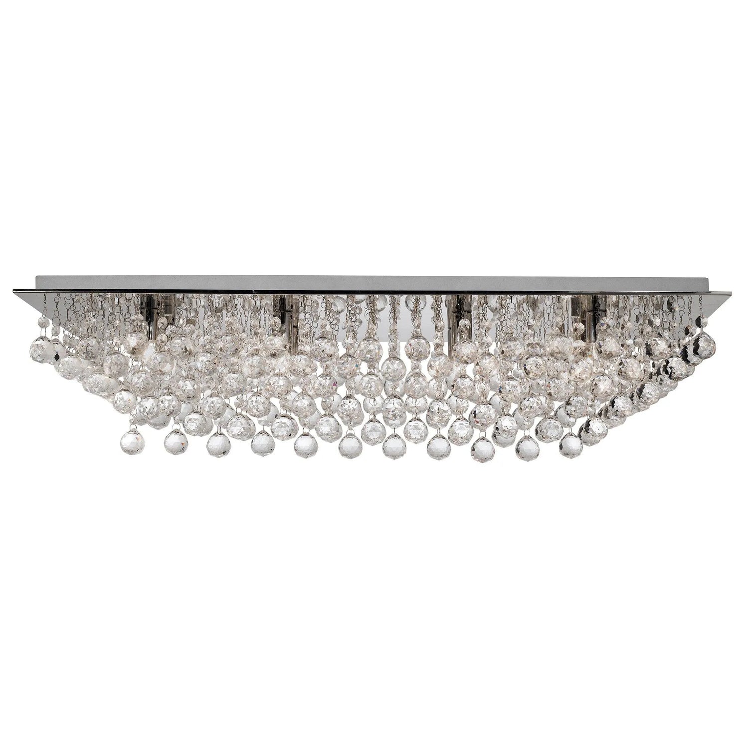 This Hanna chrome 8 light rectangular ceiling fitting with clear crystal pyramid drops looks magnificent on any ceiling. The luxurious light fits flush to the ceiling and features eight lamps surrounded by decadent crystal trimming and balls. And the elegant rectangular mirrored backplate completes the look of this large, modern chandelier.