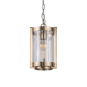 This sleek pendant light pairs a refined antique brass or satin chrome finish with your choice of clear or ribbed glass for a tailored look. Its cylindrical design highlights the exposed bulb, blending modern elegance with timeless appeal. Perfect for kitchens, hallways, or dining areas, it adds both style and versatility to any space.