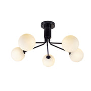 Magnalux Lando 5 Light Semi Flush Matt Black with Opal Ball Part Number - LAN05BL