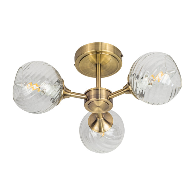 Magnalux Mona 3 Light Semi Flush Antique Brass Part Number - MON03AB