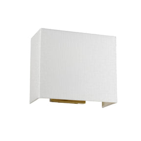 Riley is a square edged half-wall light available in stock in a faux silk ivory shade. Choose from three size options with either a Polished Chrome or Aged Brass back plate. See our shade catalogue for more shade colours and customised options.