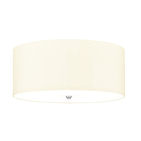 Fletcher is a flush ceiling fixture with a faux silk Ivory shade. Choose from 6 different size options. There is a gloss white acrylic diffuser that is secured with a Polished Chrome or Aged Brass Central finial. See our shade catalogue for more shade colour options.