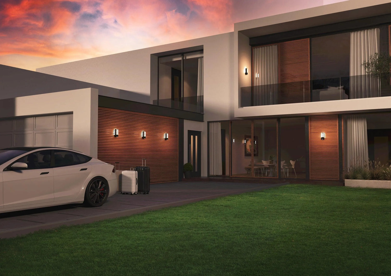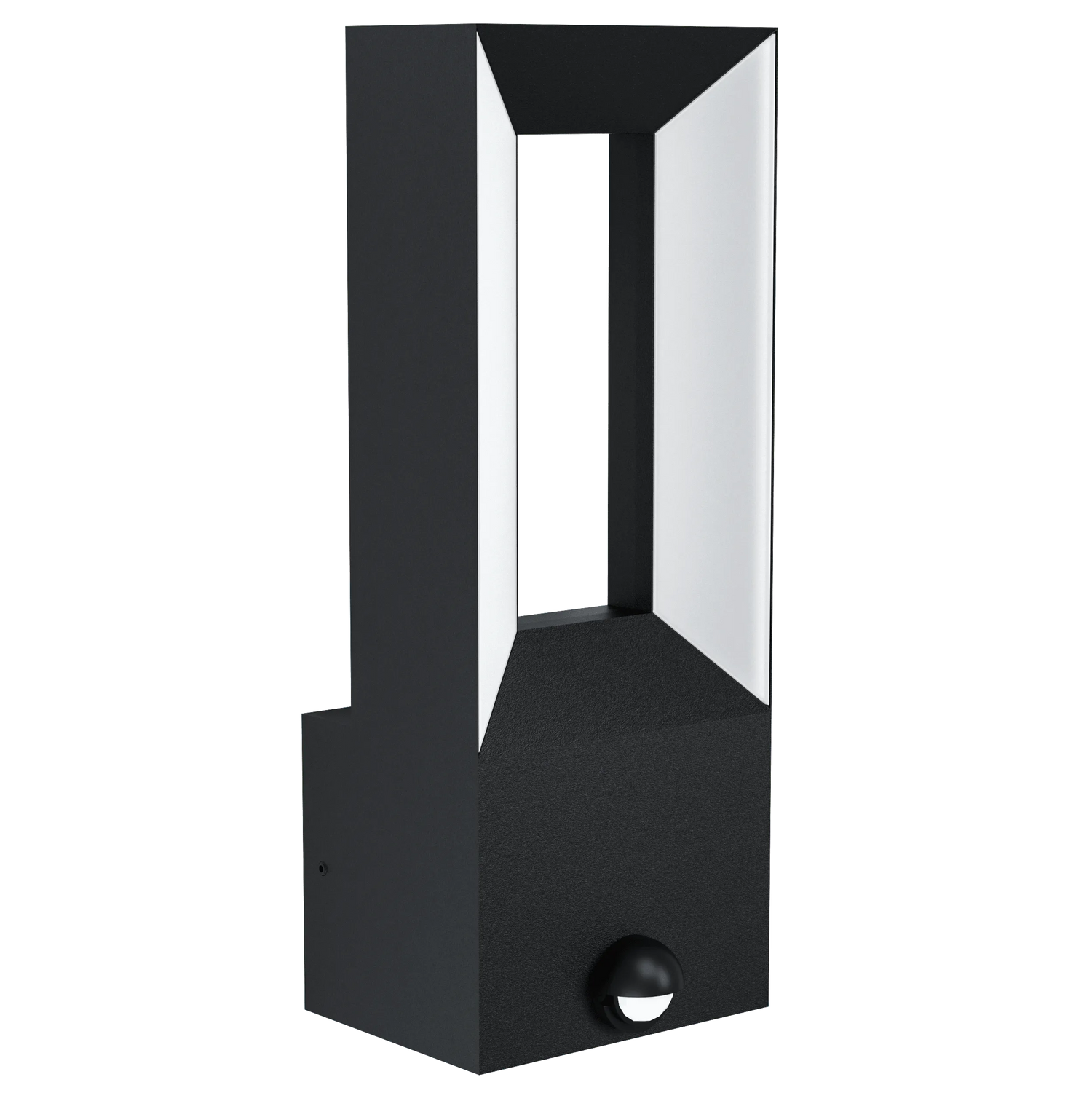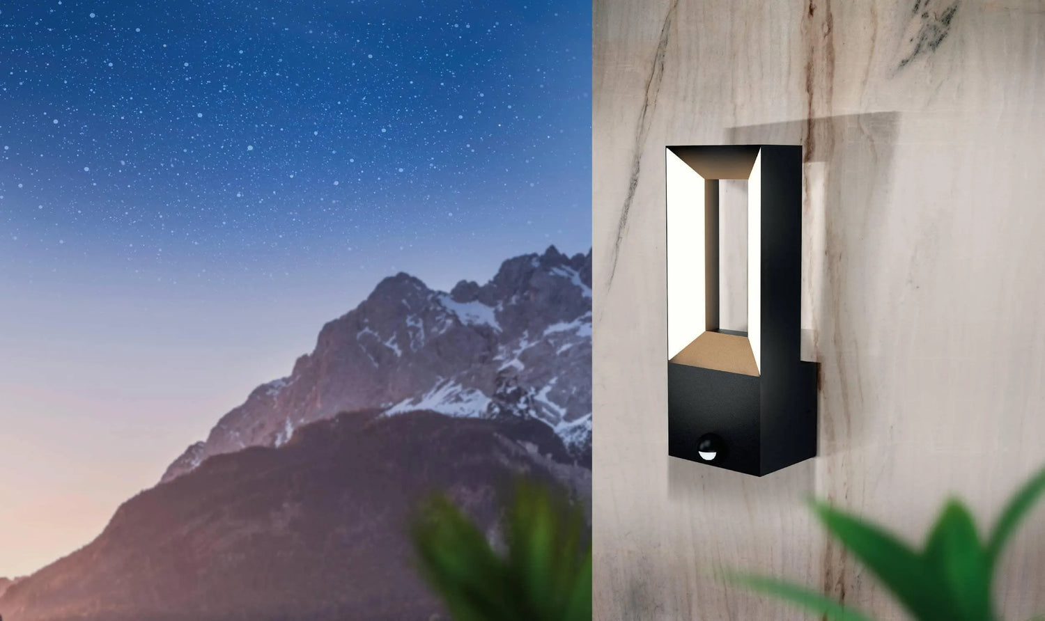 The RIFORANO LED exterior wall light has a black linear cast aluminium body. The integrated LEDs behind the diagonal white plastic light panels produce a pleasant warm white light. Additional light elements on the back of the lights produce fascinating decorative lighting effects. The wall light has an integrated motion sensor and comes on automatically to light up poor visibility areas and deter unwanted visitors. The integrated twilight sensor gauges the ambient light level to ensure the light only switches on when needed. The wall light is also suitable for outdoor use due to its IP44 protection against spray water. With its simple design, the product blends into any modern outdoor space and is the perfect sensor light for house entrances, terraces or balconies.