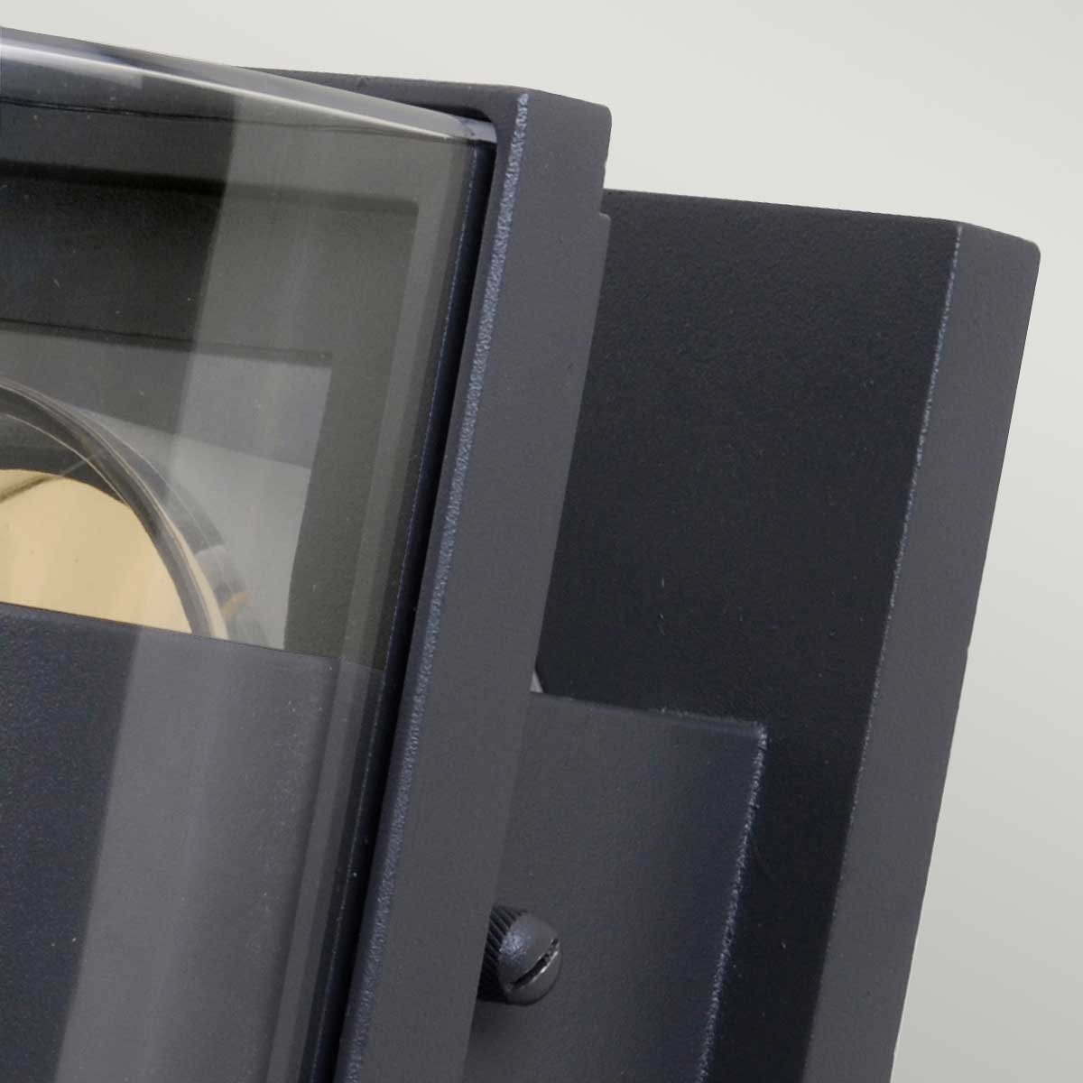The Frida collection is characterised by bold bars of die-cast aluminium painted with a Graphite finish, which disguise the light source and cast unique shadows on their surroundings. Each fitting features a polycarbonate lens.