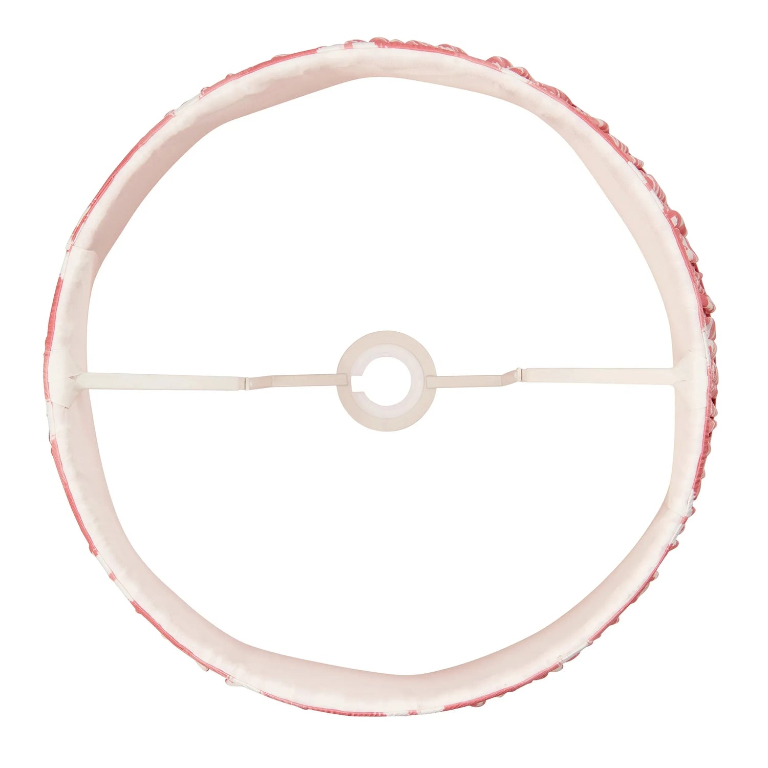 35cm tapered shade with reversible white gimbal. Unique Ikat pattern design in coral pink with taped edge detailing and plain inner lining. Perfect when paired with one of our table lights, floor lights or cable sets.