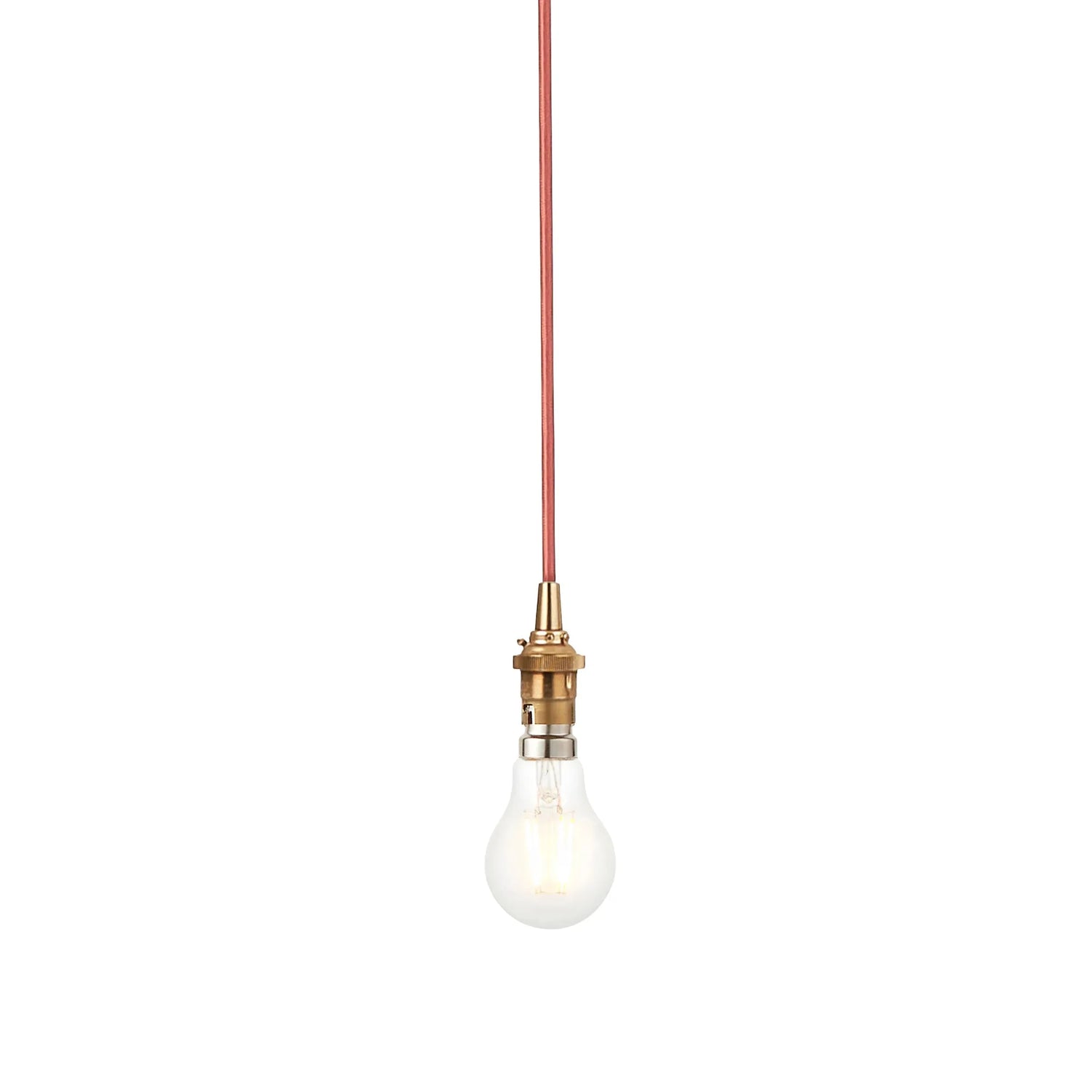 An authentic B22 brass flex set finished with muted red colour braided cable and brushed aged brass metalwork. Pair with one of our 35cm or 40cm decorative fabric shades to add a touch of understated colour into your home.