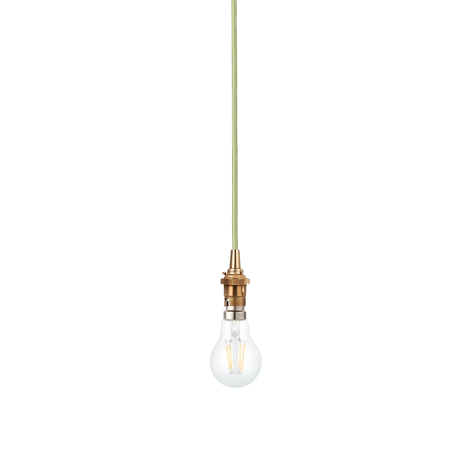 An authentic B22 brass flex set finished with muted green colour braided cable and brushed aged brass metalwork. Pair with one of our 35cm or 40cm decorative fabric shades to add a touch of understated colour into your home.