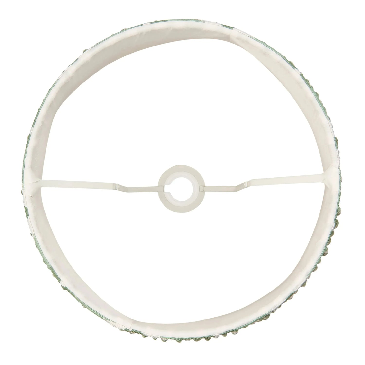 35cm tapered shade with reversible white gimbal. Zigzag pattern in Cotswold green colour with taped edge detailing and plain inner lining.