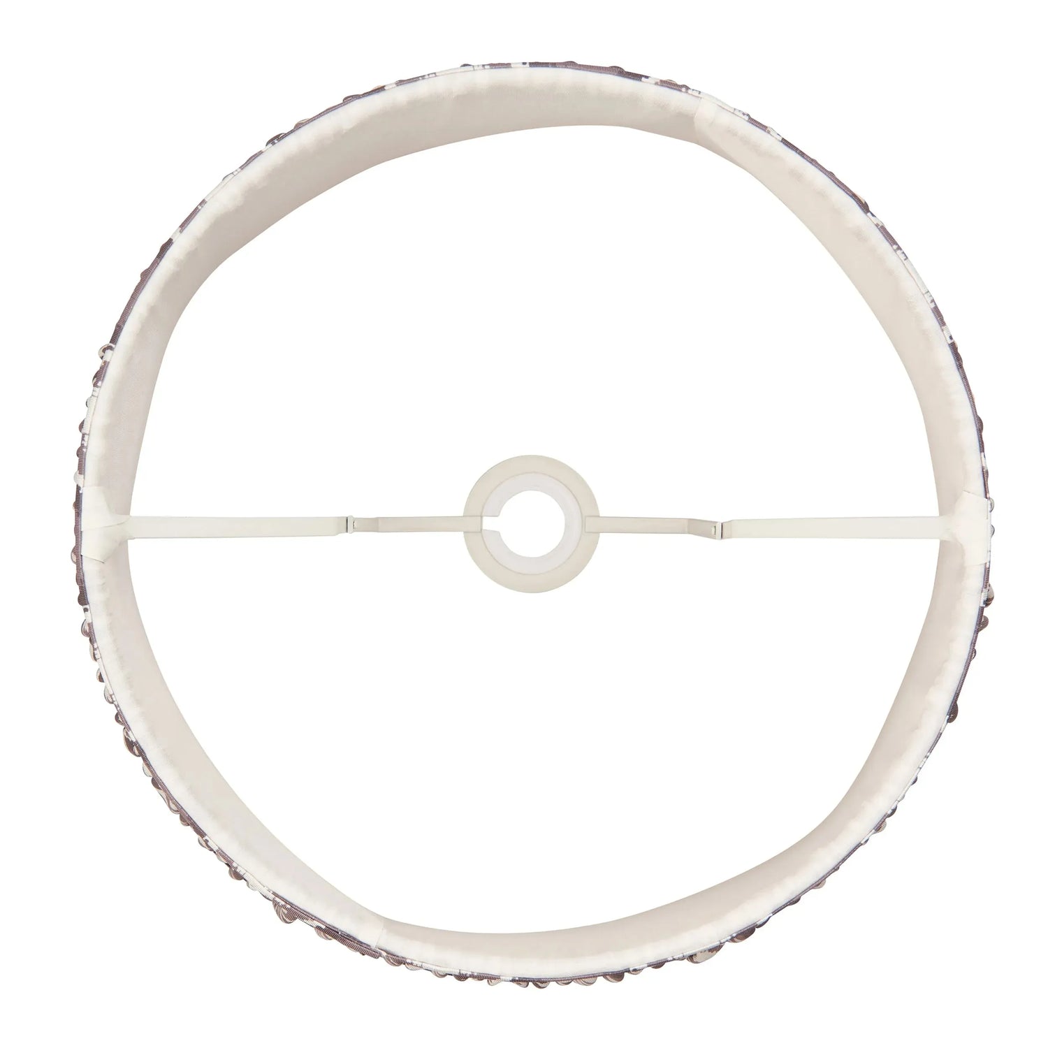 35cm tapered shade with reversible white gimbal. Unique Ikat pattern design in pearl grey with taped edge detailing and plain inner lining.