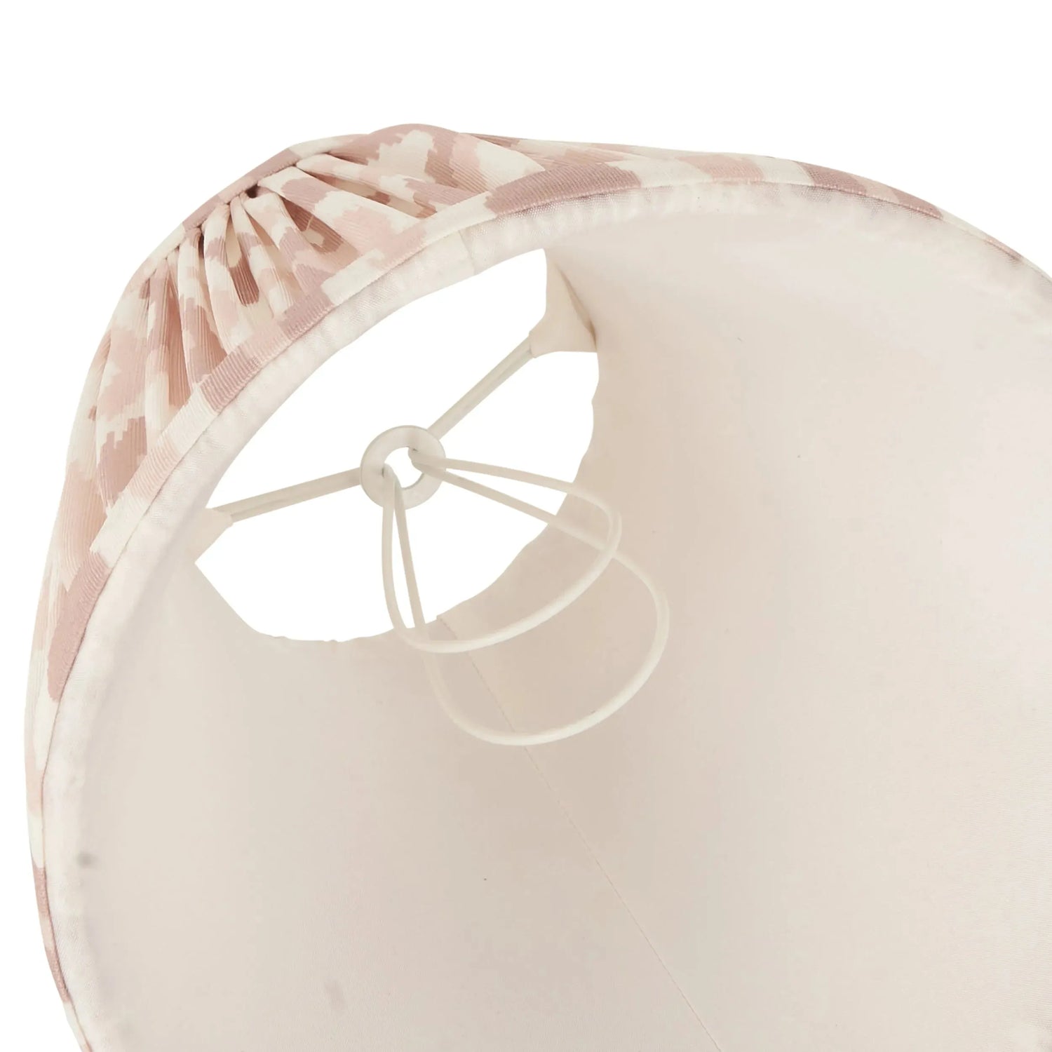16cm tapered shade with clip gimbal to fit golf or candle bulbs. Unique Ikat pattern design in a neutral tone colours with taped edge detailing and plain inner lining.