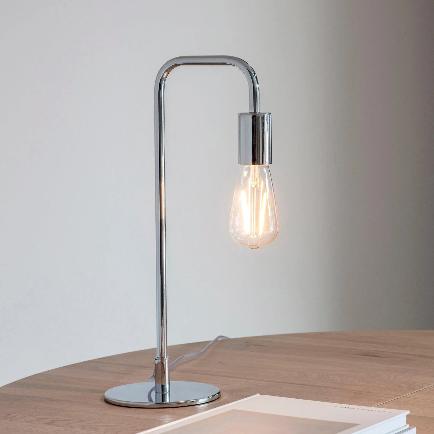 An 'on trend' mid century inspired, clean line table light. Finished in polished chrome, perfect when paired with filament LED lamps to create a modern look for today's living spaces.