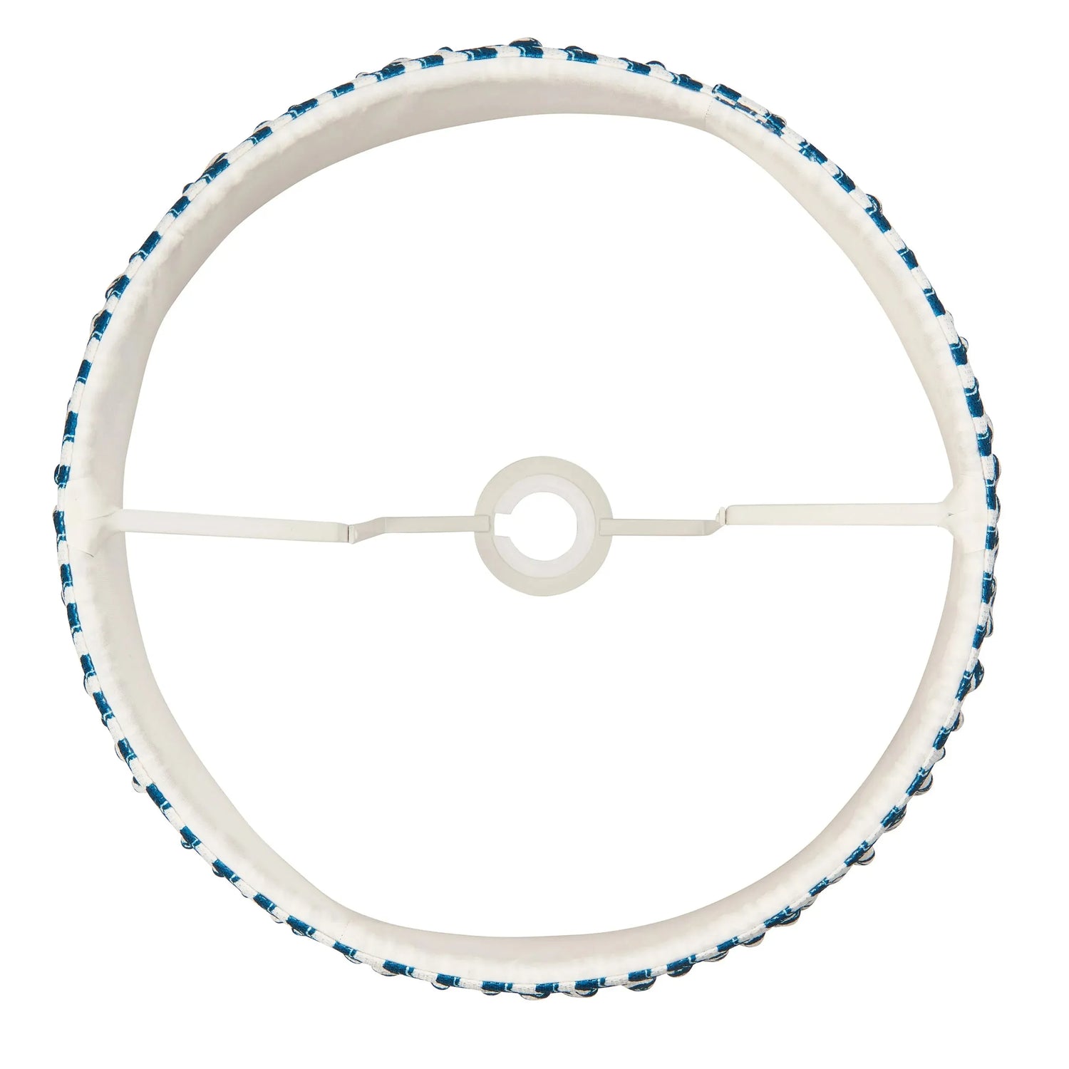 40cm tapered shade with reversible white gimbal. Ripple pattern in marlin blue with taped edge detailing and plain inner lining. Perfect when paired with one of our beautifully decorative floor lamps or cable sets.