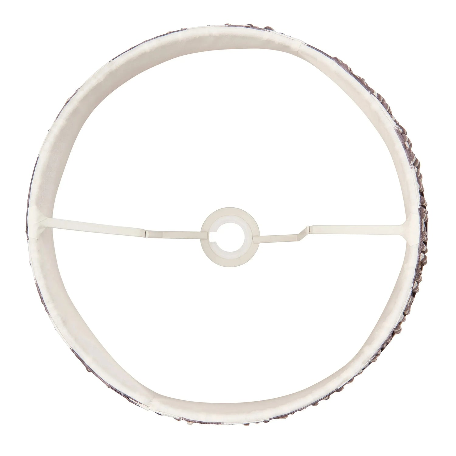 35cm tapered shade with reversible white gimbal. Zigzag pattern in pearl grey colour with taped edge detailing and plain inner lining. Perfect when paired with one of our beautifully decorative table lights, floor lights and cable sets.