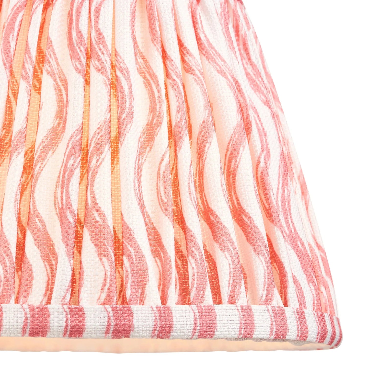20cm tapered shade with white gimbal. Ripple pattern in coral pink colour with taped edge detailing and plain inner lining.