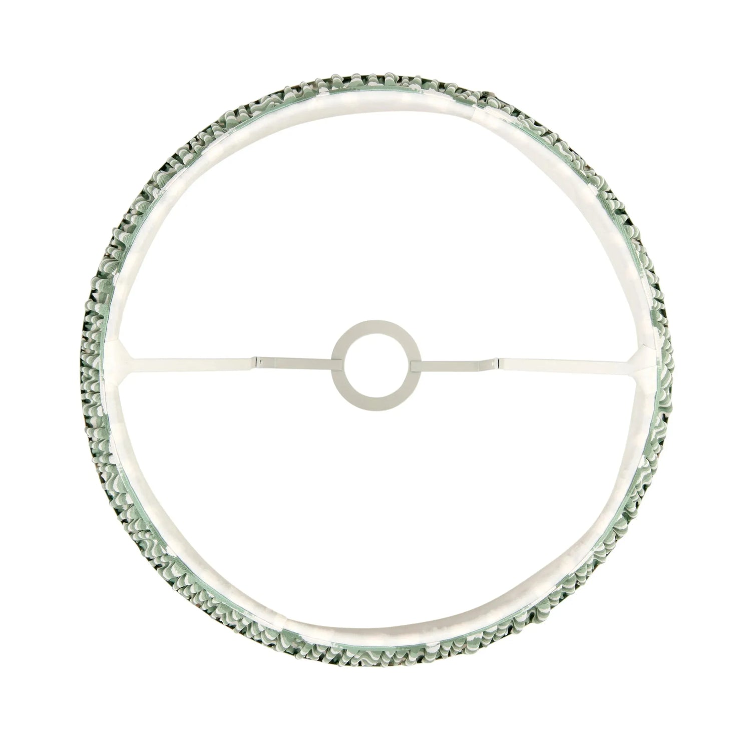 40cm tapered shade with reversible white gimbal. Zigzag pattern in Cotswold green colour with taped edge detailing and plain inner lining.