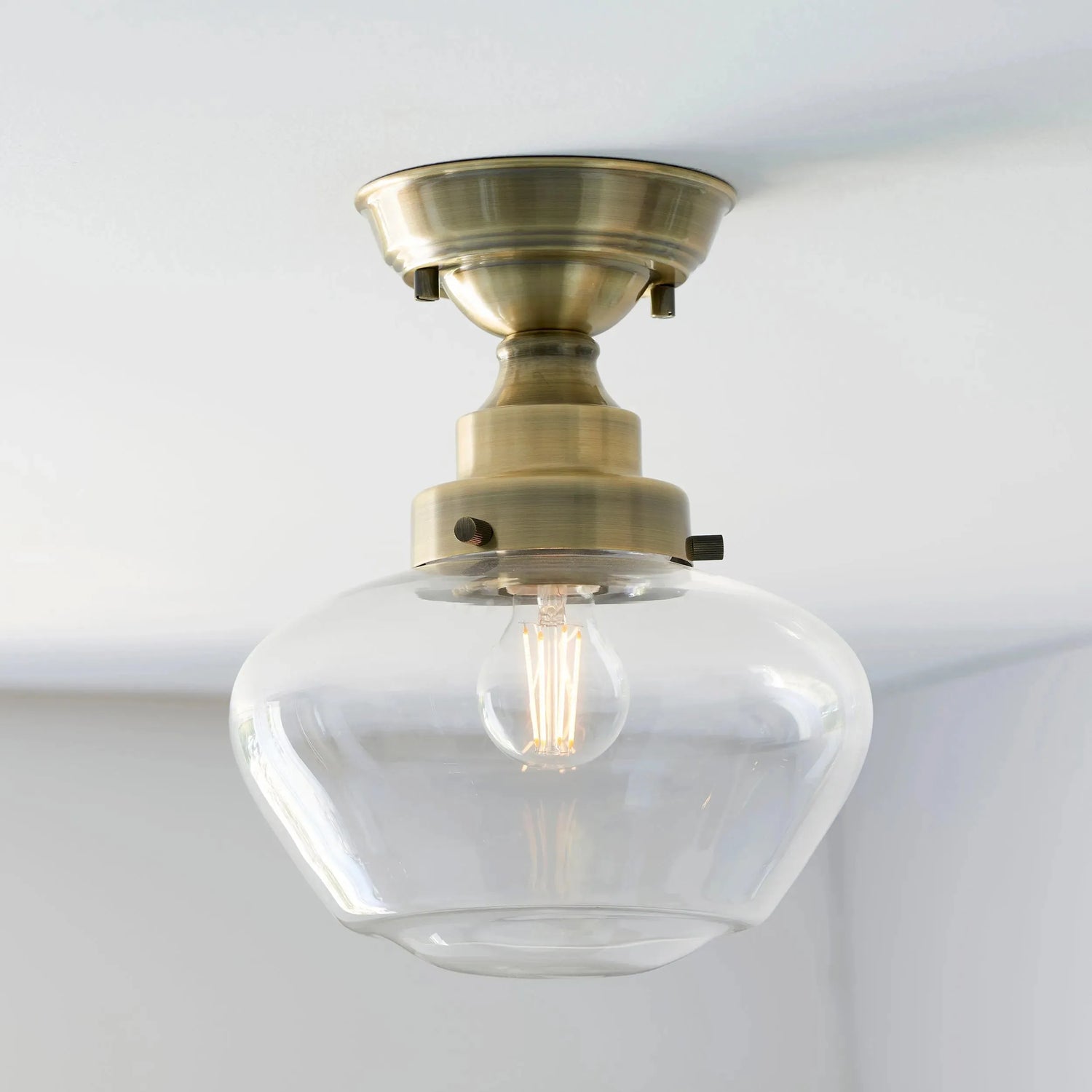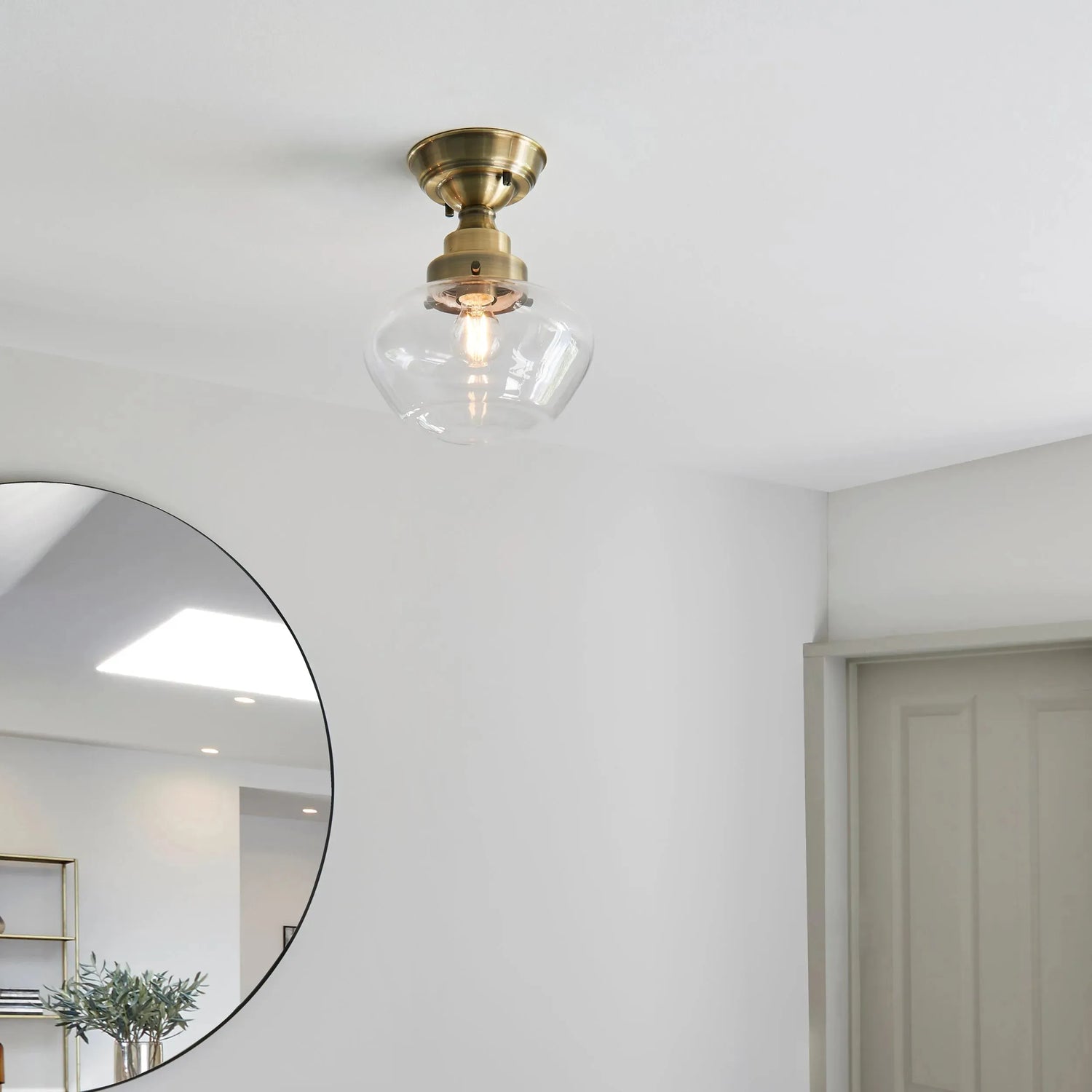 Endon Lighting 97687 Camberley 1lt Semi flush Indoor light fitting Antique brass plate & clear glass