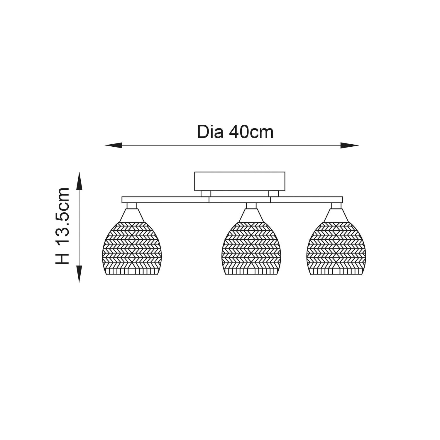 A 3 light flush ceiling fitting with curved metal arms in an antique brass finish, and cut glass shades. suitable for use with LED lamps and dimmable. Matching items and other colour options available