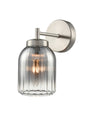 A satin nickel finish wall light with ribbed glass featuring a smoked ombre effect.