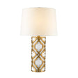 The Arabella table lamp has a beautiful Distressed Gold metal outer shade with a Ivory linen fabric shade. LS435