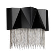 Sculptural and exotic, Zuma tantalises with a purely contemporary form. The over-scaled geometric pendant, linear chandelier and wall light silhouettes are softened with layers of fine jeweler's chain flowing from the epicentre. Available in Satin Black with Silver chain accents.