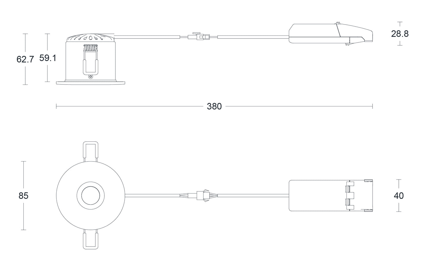 Slim profile 3mm bezel with a slimline double hinged driver, including colour coded loop in/loop out terminals