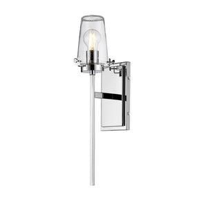 The Alton wall light combines industrial-era detailing and soft modern style. The height of this tall wall light makes an impressive statement while its nuts and bolt hardware accents create a look that works in both traditional or modern bathrooms. IP44 and available in a Chrome finish.