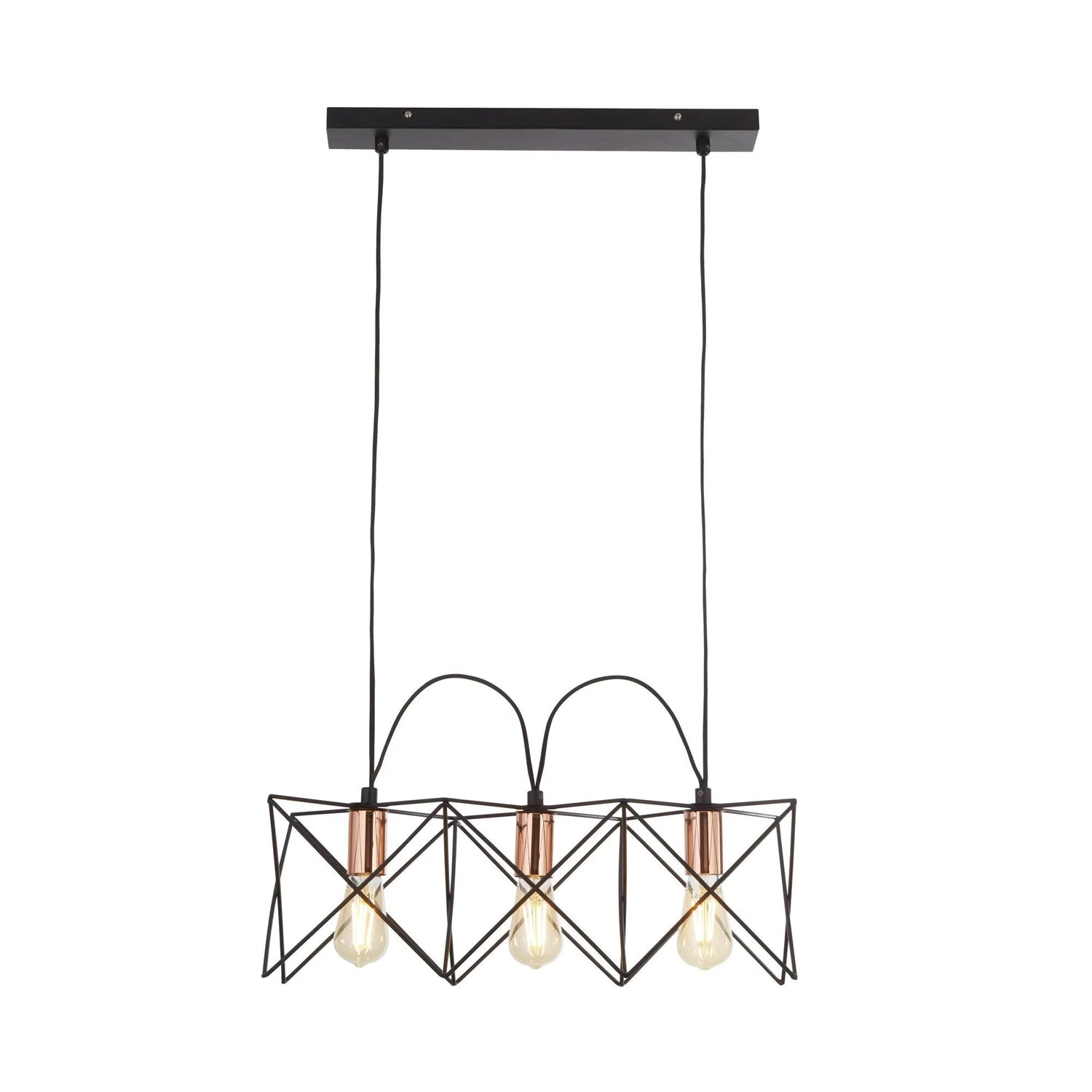 Add instant style to your living space with the 3 light Anthea frame pendant. Designed in a matt black finish with copper detail, the 3 lights shine downwards to create the perfect setting. Ideal above a dining table or kitchen bar.