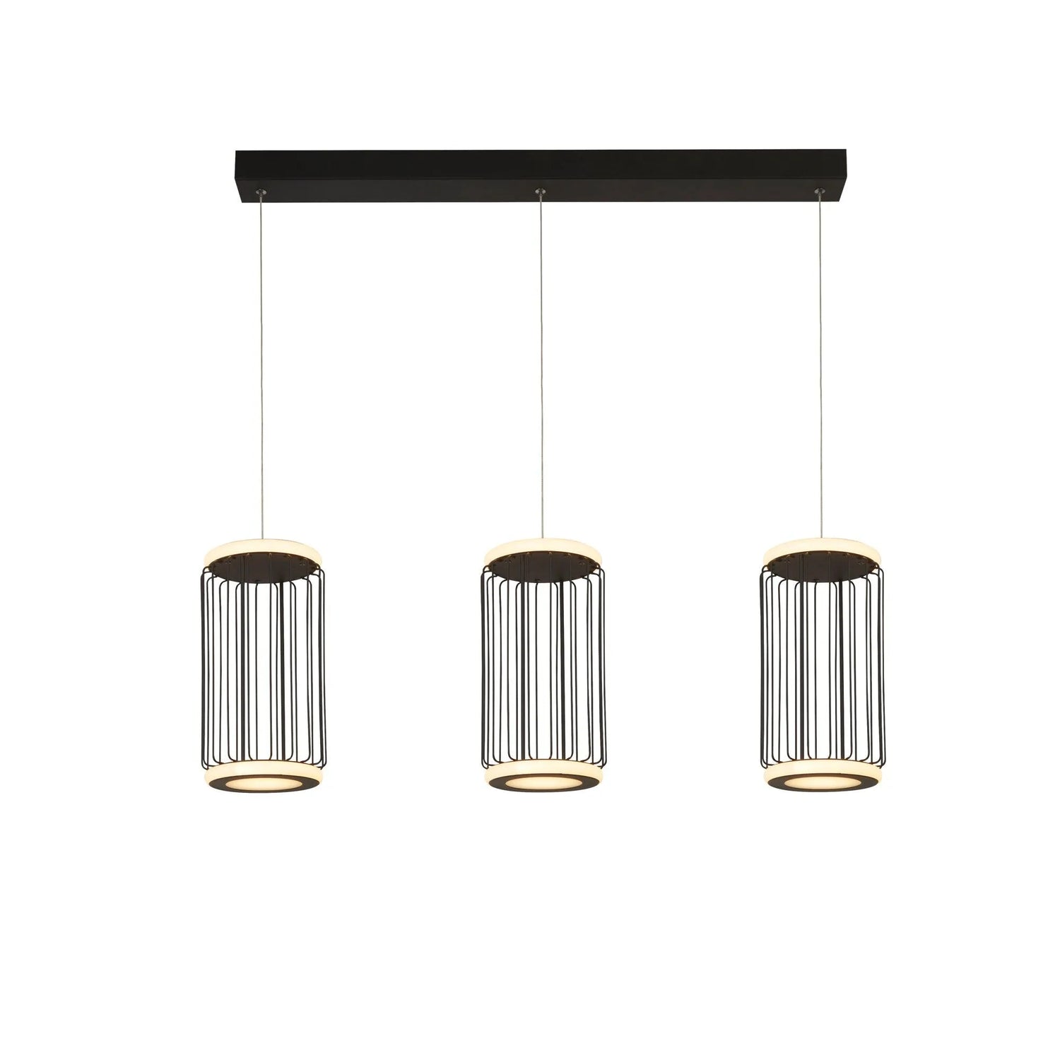 The Circolo 3Lt Cage Bar Pendant, crafted from a combination of black metal and white silicon, showcases 3 shades in a stylish cylinder shape that allows for both downward and upward lighting. Adjustable in height and with a unique design element, it creates a balanced and evenly distributed illumination, making it ideal for various applications. Whether you seek ambient lighting for your living room, or task lighting for your kitchen or dining room, the pendant offers the perfect lighting solution whilst looking incredibly stylish.