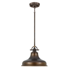 Emery is a classic Americana metal pendant series which adds a nostalgic flair to any kitchen island or dinner table. The single medium sized pendant is a is available in a Palladian Bronze finish. It includes a prismatic lens diffuser for a soft, even light.