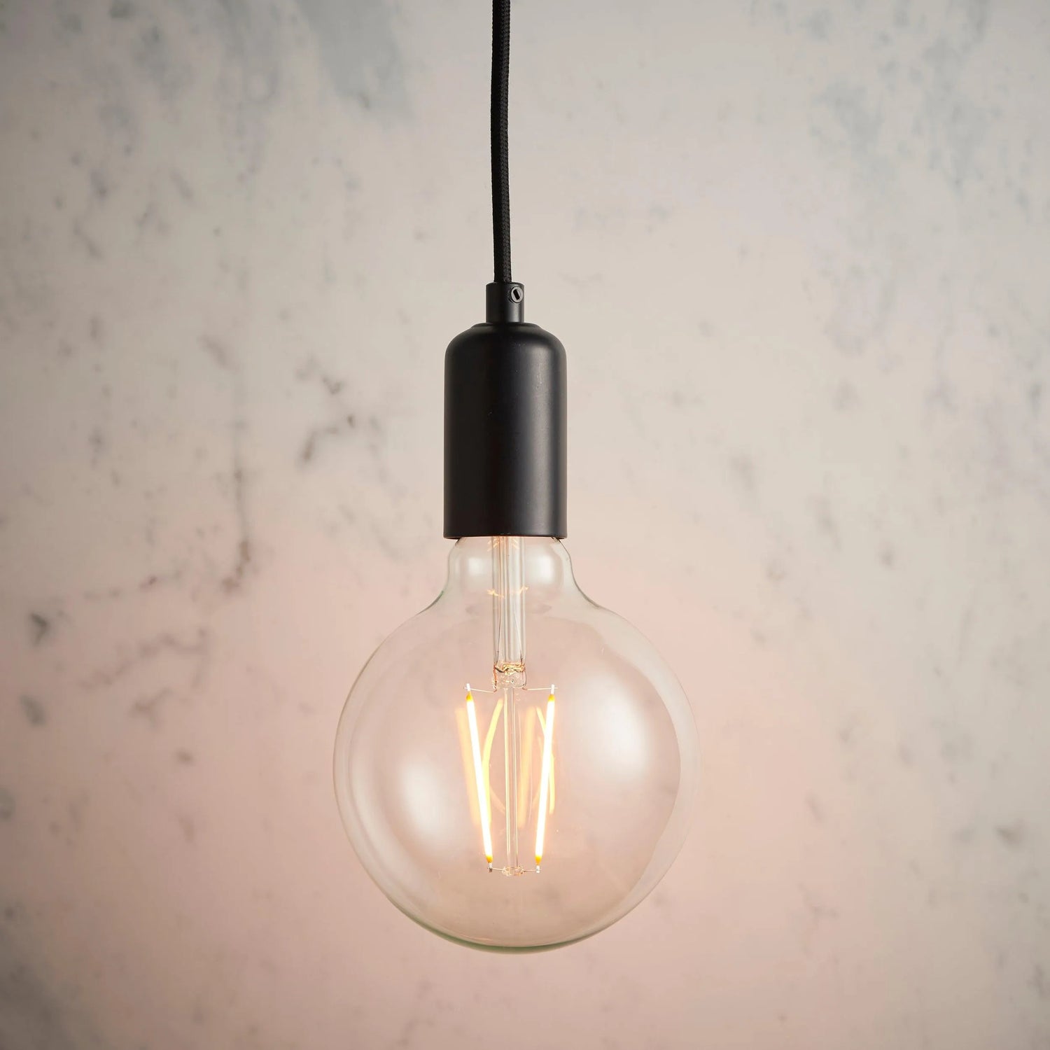 Create that cool urban look with this industrial pendant. Simple in construction with a single matt black painted lamp holder suspended from height adjustable black fabric flex.