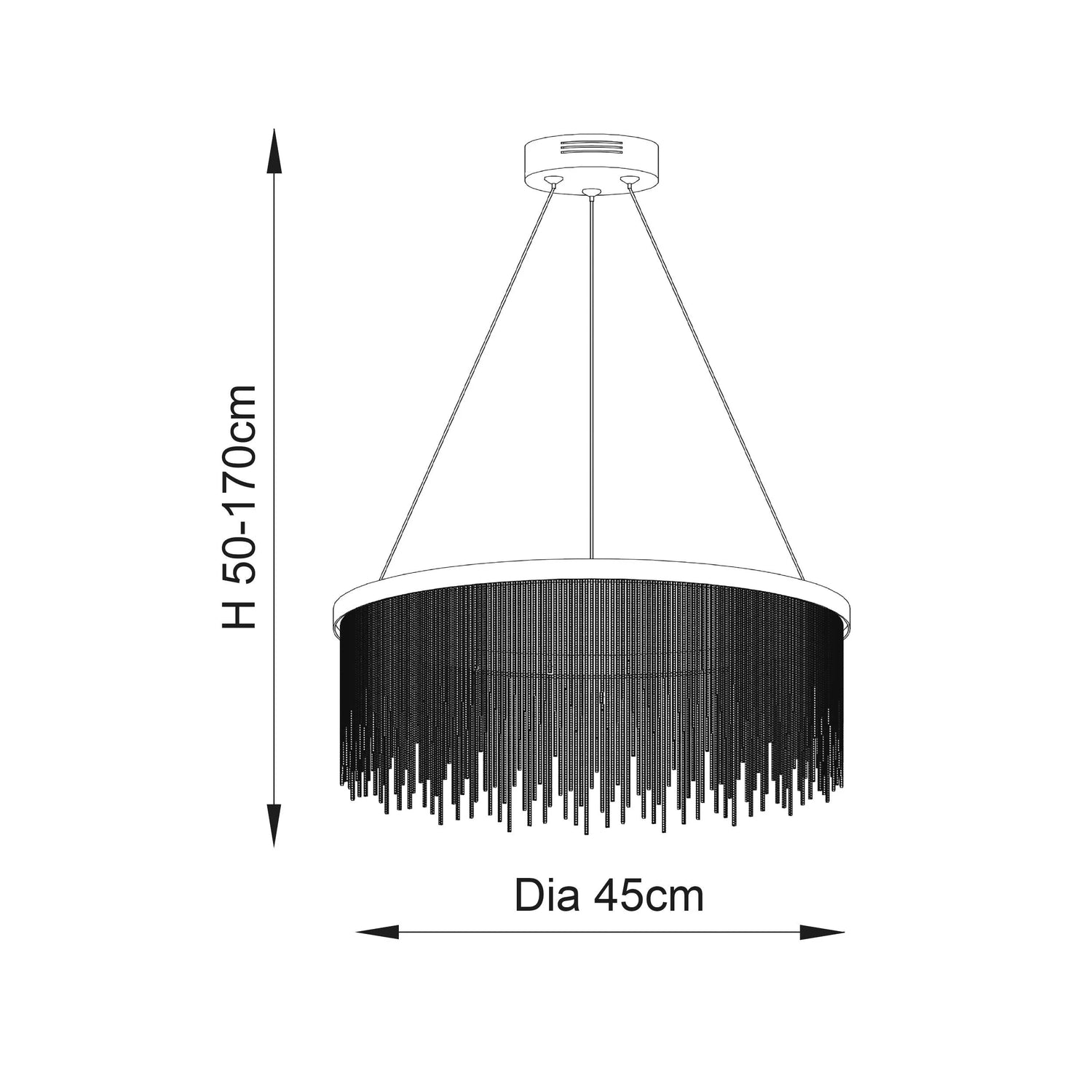 A beautiful pendant light finished in a brushed copper effect plate. Delicate copper effect chains hang from a LED ring of light at differing lengths for a stunning shimmering effect.