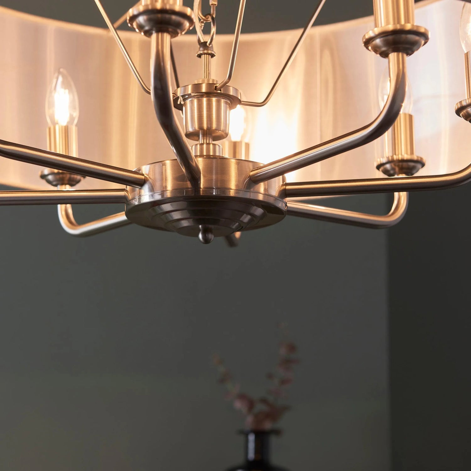 The Highclere pendant is a sophisticated combination of Natural 100% linen fabric shades with brushed metallic inner and brushed chrome plated metalwork. This statement light is the perfect timeless addition to modern and classic homes of today.