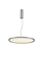 Large polished nickel LED pendant with acrylic diffuser. The pendant is adjustable prior to installation.