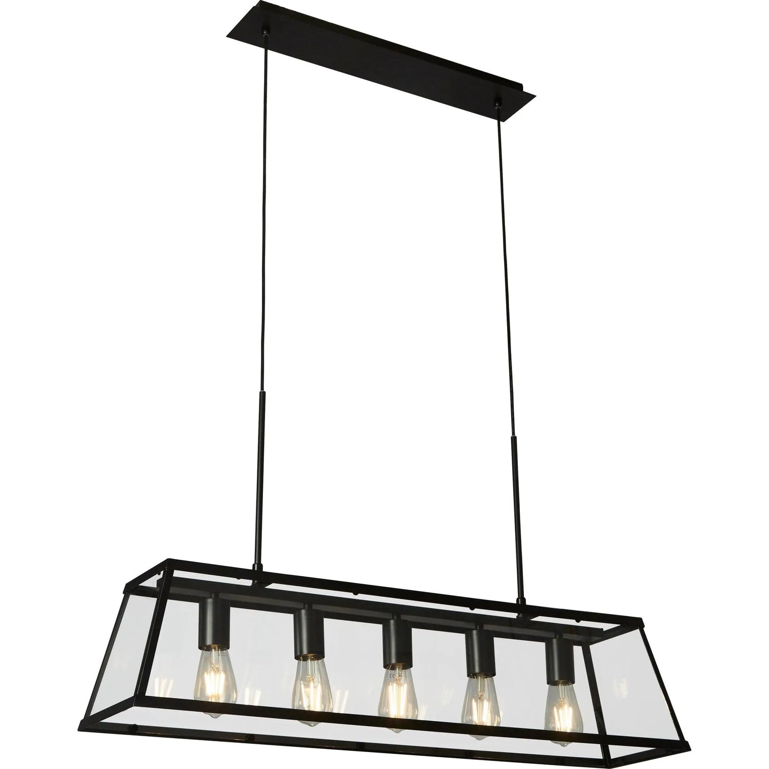 The Voyager clear glass lantern bar houses 5 lights and has an urban feel to it. Exposed bulbs create a modern edge and will ensure the item stands out; whereas the sleek matt black finish creates a timeless appeal. Add to your contemporary lounge, dining room or kitchen.