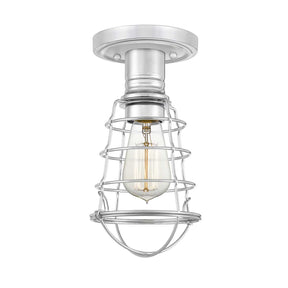 The Mixon is an industrial cage styled ceiling flush light. It's no nonsense simplicity, compliments any space that is trying to achieve a spartan clean feel. Finished in Polished Chrome, this product is best shown with an Edison style lamp for a truly authentic look.