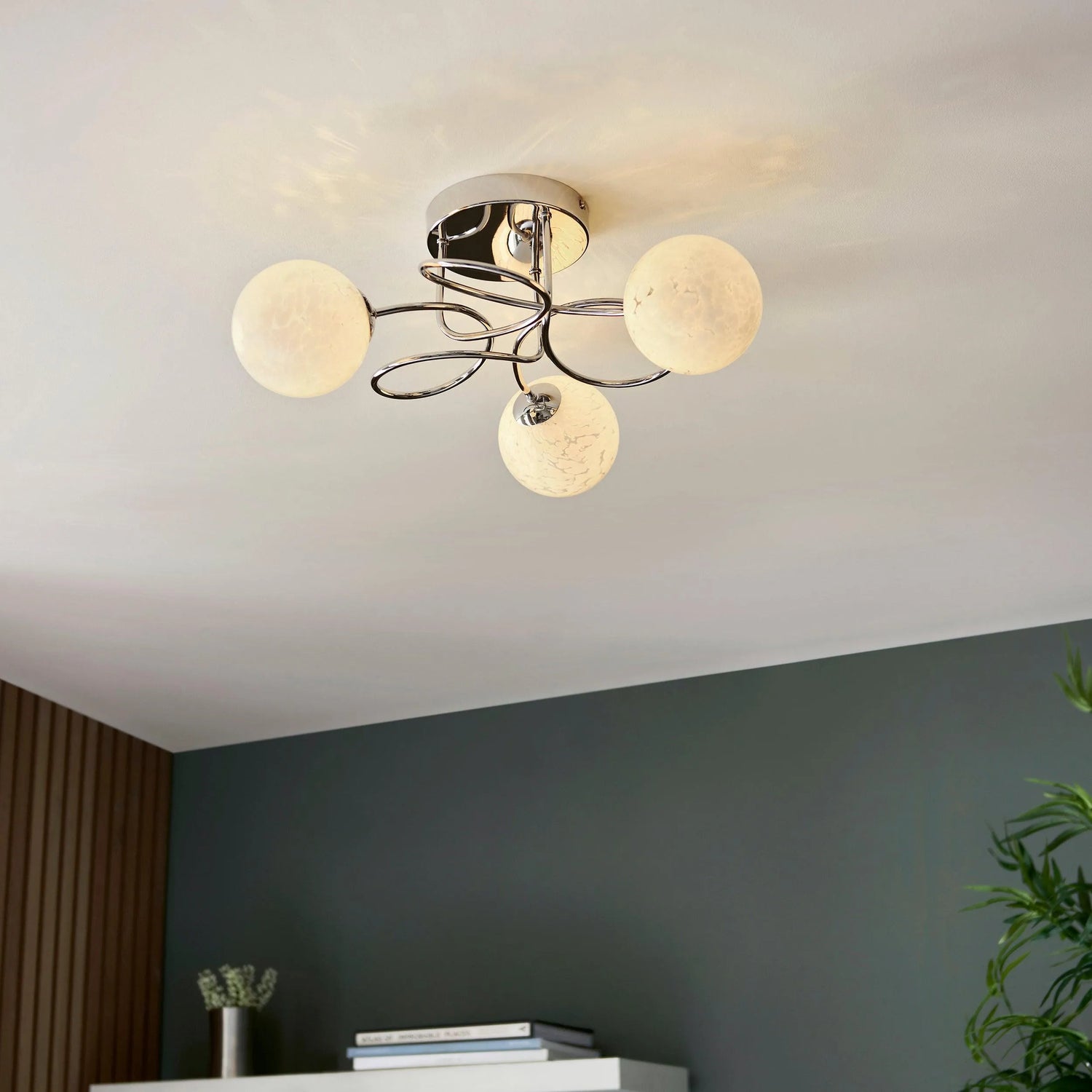 Endon Lighting 96641 Delos Indoor Semi flush Light Chrome plate & white confetti glass Dimmable