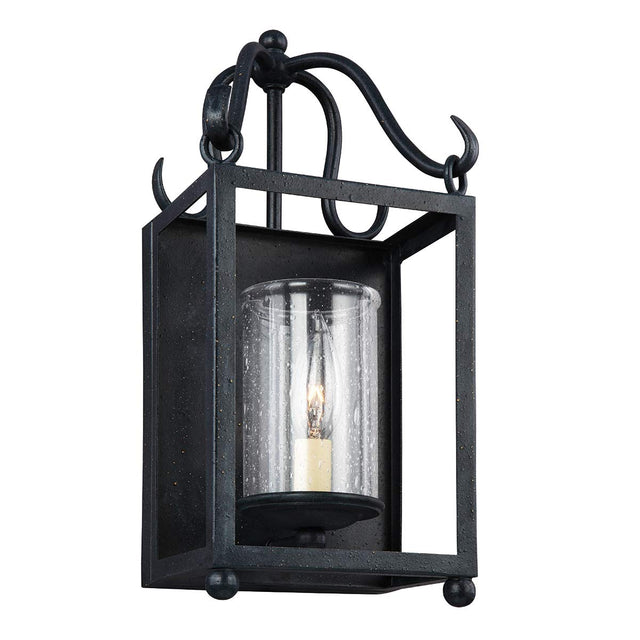 The Declaration lighting collection is a series of traditional lanterns featuring open frames finished in Antique Forged Iron. The bulbs are surrounded by Clear Seeded glass shades to add warmth, depth and sparkle.