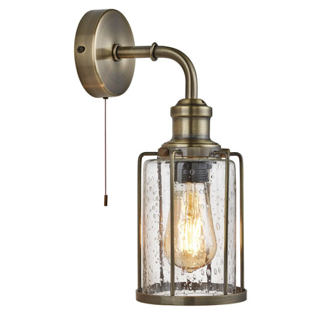 Searchlight Pipes Wall Light - Antique Brass Metal & Seeded Glass Search Light Part Number 1261AB