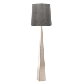 Steel tapered column floor lamp finished in Polished Nickel. Includes a Dark Grey faux silk hard-backed shade. LS3012