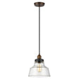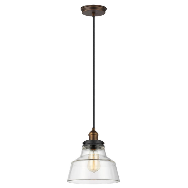 The Baskin lighting collection by Feiss is an ultra-clean, modern take on the classic antique socket pendant light. In two, iconic silhouettes, the clear thick glass pendants bring warmth and sparkle. This unique combination of Painted Aged Brass with Dark Weathered Zinc h works well in a more rustic décor.