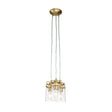 The vintage style of the Brinley collection gives a beautifully modern treatment to the familiarity and comfort of canning jars. The Brinley 3 lt pendant is finished in Brushed Brass and has clear glass shades.