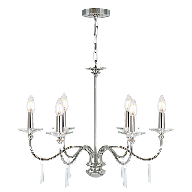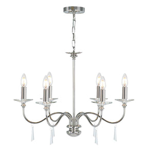 Elstead Lighting Chandelier from the Finsbury Park range. Finsbury Park 6 Light Chandelier Product Code = FP6-POL-NICKEL