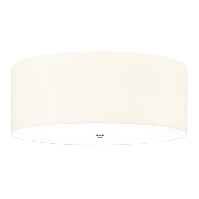 Fletcher is a flush ceiling fixture with a faux silk Ivory shade. Choose from 6 different size options. There is a gloss white acrylic diffuser that is secured with a Polished Chrome or Aged Brass Central finial. See our shade catalogue for more shade colour options.