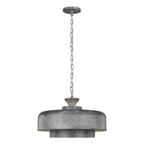 The Haymarket pendant has an industrial chic double layered metal shade in a weathered galvanized finish.