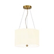 The Pearce pendant range with suspension wires is available in stock with a faux silk Ivory shade. Choose from 6 different size options with either a Polished Chrome or Aged Brass Ceiling pan and finial. A gloss white acrylic bottom diffuser is included. See our shade catalogue for more shade colours and customised option.